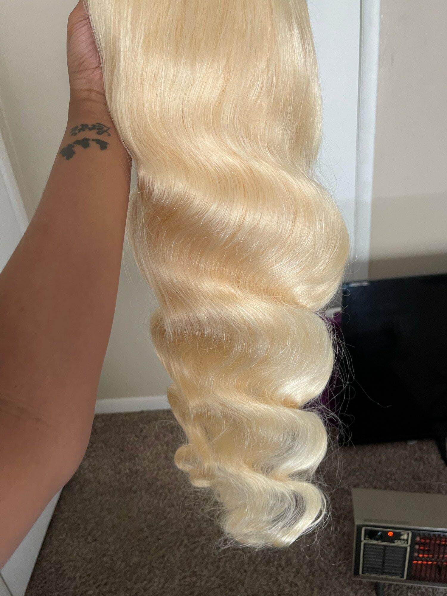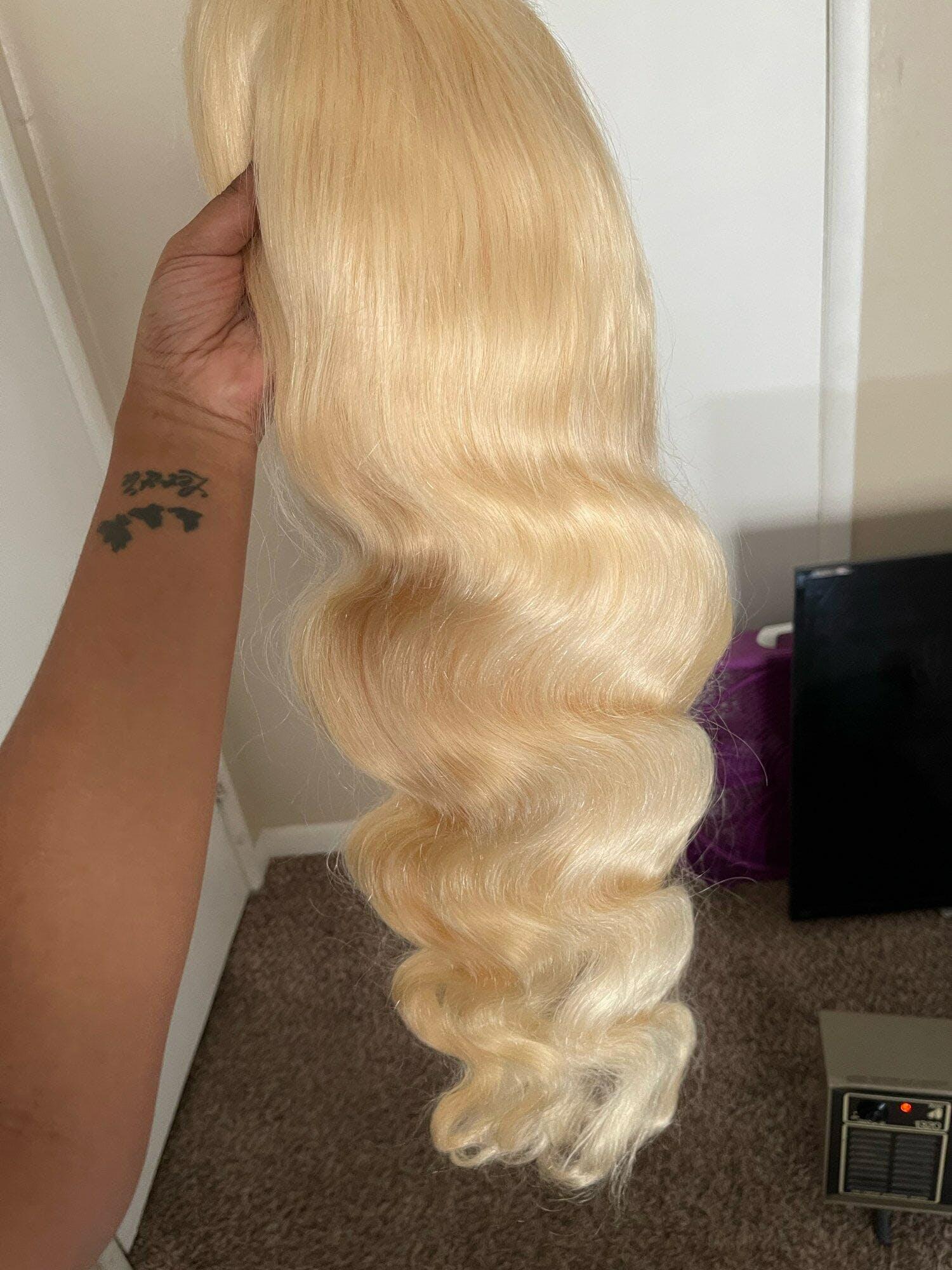 This 613 lace front human hair wig is an absolute gem! The quality of the hair is outstanding—soft, silky, and with a beautiful natural luster that looks just like real, healthy hair. The wig is full and thick, with no signs of shedding or tangling, even after multiple washes. The 613 color is vibrant yet natural, offering a stunning blonde shade that is perfect for customizing or wearing as is. The lace is transparent and blends seamlessly with my skin, making the hairline look incredibly realistic. Overall, this wig exceeded my expectations, providing a high-end look and feel at a great value. Highly recommended!